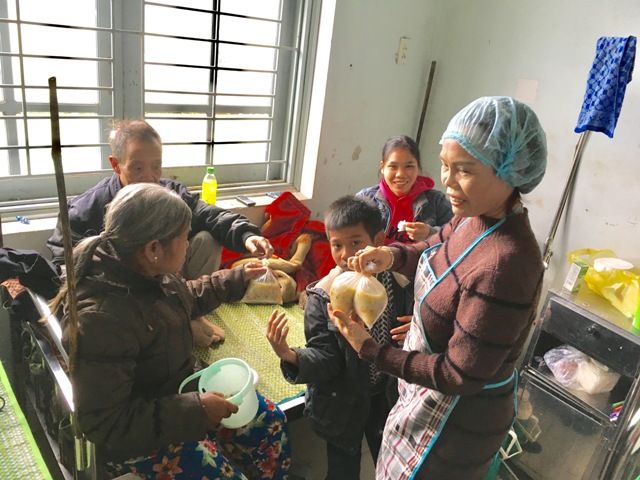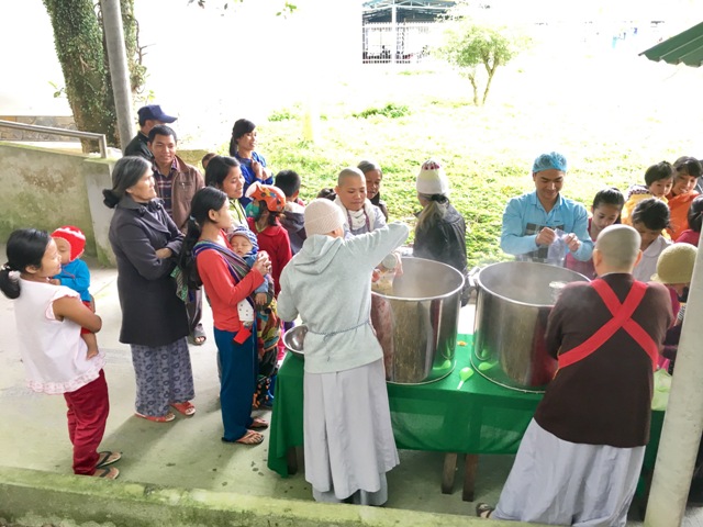 Cũng trong ngày hôm nay, chư Tôn đức trong Ban Trị sự cũng đã phát gạo hàng tháng đến cho các hộ gia đình có hoàn cảnh khó khăn, cũng như phát cháo định kỳ cho những bệnh nhân tại bệnh viện A Lưới