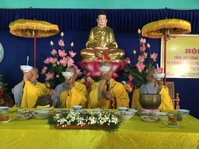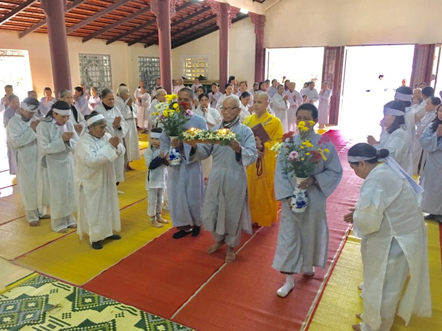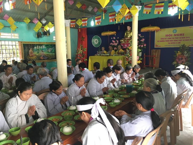 Quang lâm chứng minh khai khoá có chư Tôn đức Thường trực Ban Trị sự GHPGVN huyện A Lưới cùng đông đảo đồng bào Phật tử tại huyện A Lưới về tham dự khoá tu một ngày an lạc đầu năm Đinh Dậu.