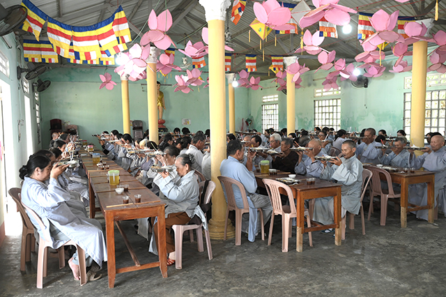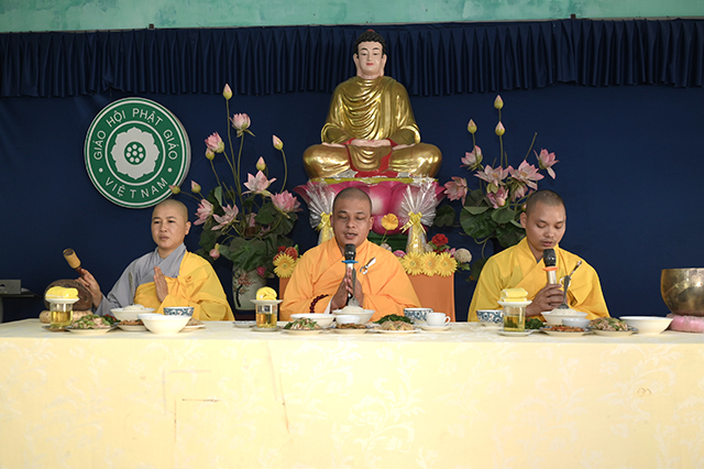 Sau đó, các Phật tử được thực hành nghi thức Quá đường để giữ tâm ý trong khi dùng bữa, trở về với hiện tại nhiệm mầu; lắng lòng cùng chư Tôn đức thực tập lòng biết ơn, thức tỉnh dòng tâm đang quay cuồng theo cuộc sống và cảm nhận hạnh phúc được hiện hữu.