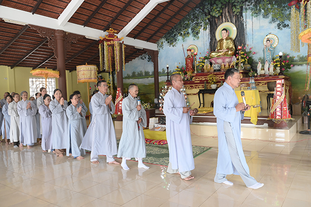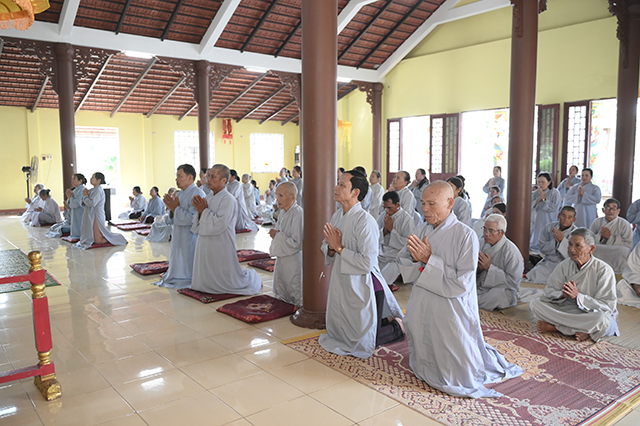 Đại đức Thích Thiền Huy đã niêm hương bạch Phật và hướng dẫn Phật tử cử hành khoá lễ Sám hối. Tiếp đến, Đại đức Thích Thiền Ngộ đã niêm hương bạch Phật và cử hành nghi thức truyền Bát Quan trai giới đến đồng bào Phật tử các giới.