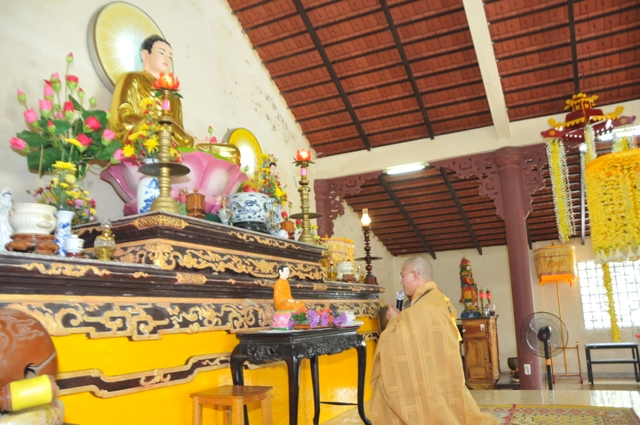 Đại đức Thích Tâm Phương niêm hương bạch Phật