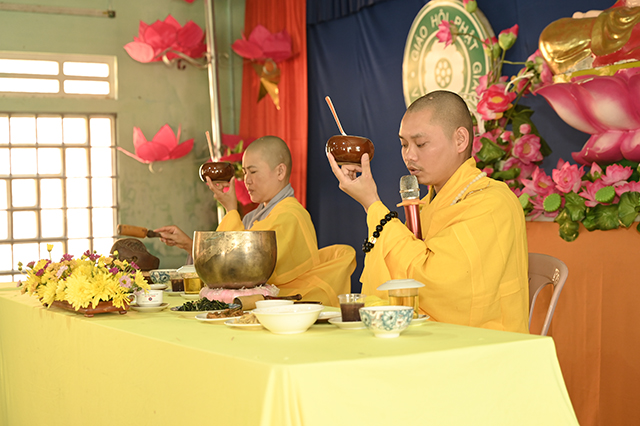 Sau thời Pháp thoại, quý Phật tử thực hành nghi thức quá đường dưới sự hướng dẫn của Chư Tôn đức chứng minh.