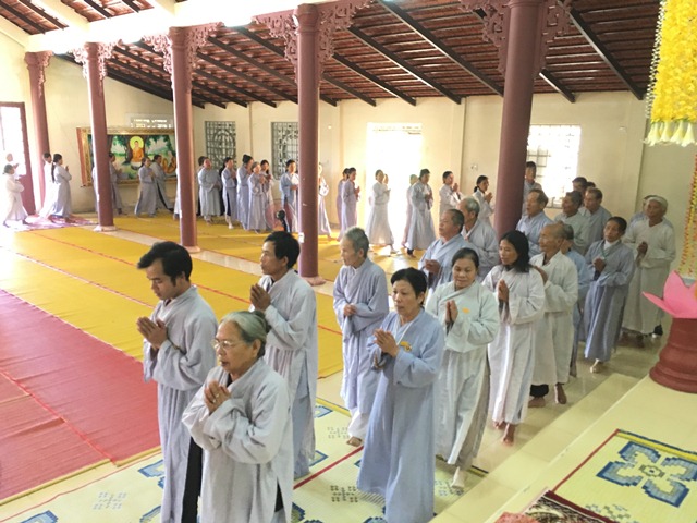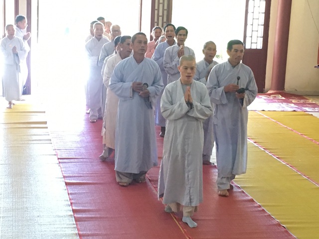 Quý Phật tử kinh hành niệm Phật theo sự hướng dẫn của chư Tôn đức