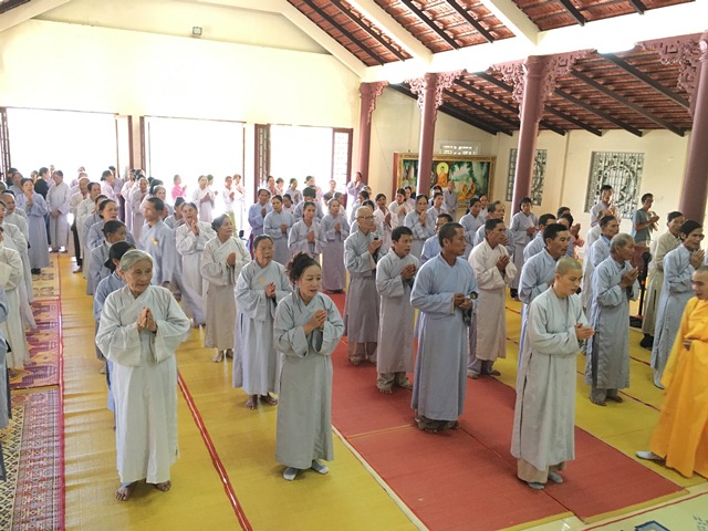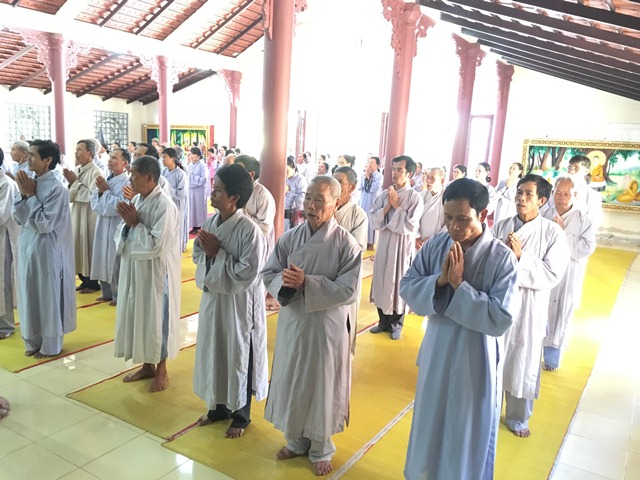 Trước khi vào thời khóa, chư Tôn đức Tăng Ni cùng bà con đồng bào Phật tử hướng về Tổ đình Tường Vân đảnh lễ tưởng niệm Giác linh Cố Trưởng lão Hòa thượng tân viên tịch thượng CHƠN hạ THIỆN, Phó pháp chủ HĐCM, Phó Chủ tịch Thường trực HĐTS, trú trì Tổ đình Tường Vân.