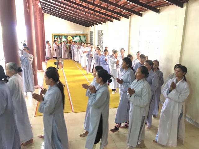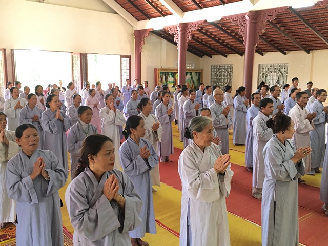 Quang lâm chứng minh và hướng dẫn khóa tu có Đại đức Thích Nhật Hậu, Ủy viên Ban Trị sự; chư Tôn đức Ni, cư sĩ Phật tử trong Ban Trị sự cùng đông đảo quý Đạo hữu tại huyện nhà và thành phố Huế về tu tập.