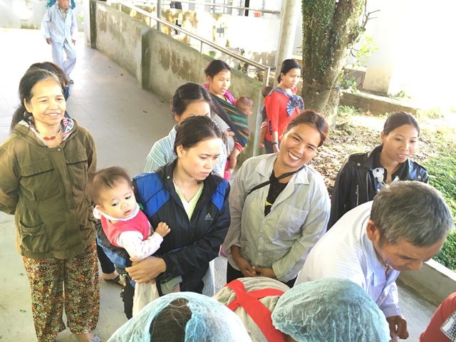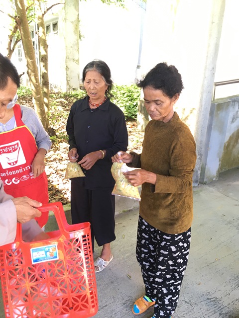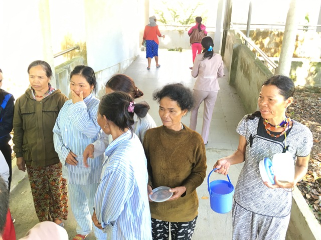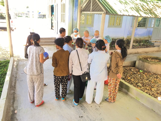 Buổi sáng cùng ngày, chư Tôn đức phát cháo tại bệnh viện huyện A Lưới đến các bệnh nhân và người nhà đang điều trị tại đây.