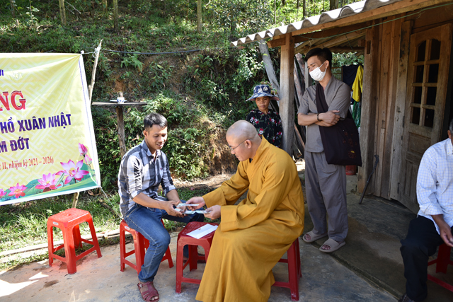 Hộ nghèo được hỗ trợ trong đợt này là anh Hồ Xuân Nhât hiện trú tại thôn Liên Hiệp, xã Lâm Đớt. Gia đình anh Nhật thuộc hộ nghèo, căn nhà của anh đã xuống cấp nghiêm trọng, không đảm bảo an toàn, đặc biệt là trong mùa mưa bão, trong khi đó kinh tế gia đình khó khăn nên không thể xây dựng được nhà mới. Trước hoàn cảnh khó khăn của gia đình anh Nhật, Ban Trị sự Phật giáo huyện đã vận động Phật tử Đinh Trọng Đức và sinh viên, học sinh của Duc Dinh Center và Lend a Hand (tại Mỹ) hỗ trợ 50 triệu đồng để xây dựng căn nhà kiên cố hơn để an tâm ổn định cuộc sống.