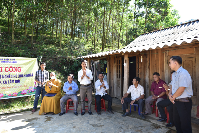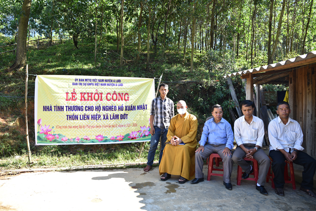Thiết thực chào mừng Đại hội Đại biểu Phật giáo huyện A Lưới lần thứ II, nhiệm kỳ 2021 - 2026. Sáng ngày 09 tháng 7 năm 2021, Ban Trị sự GHPGVN huyện A Lưới phối hợp với Ủy ban MTTQ Việt Nam huyện A Lưới đã đặt đá khởi công xây dựng nhà tình thương cho hộ nghèo Hồ Xuân Nhật tại thôn Liên Hiệp, xã Lâm Đớt, huyện A Lưới.