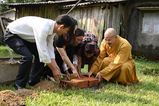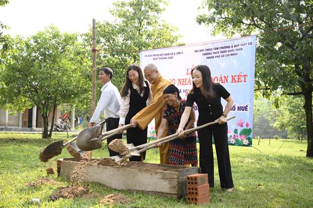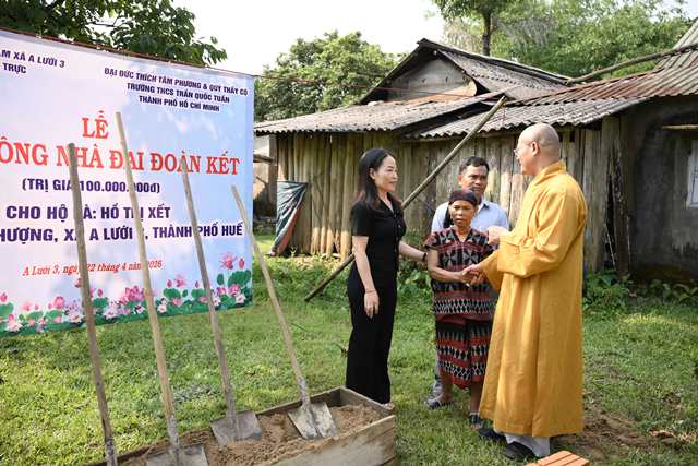 Trước hoàn cảnh khó khăn của gia đình bà Hồ Thị Xết, Đại đức Thích Tâm Phương đã kết nối quý Thầy, Cô trường THCS Trần Quốc Tuấn, thành phố Hồ Chí Minh đã về thăm và hỗ trợ 100 triệu đồng để xây dựng nhà Đại đoàn kết cho gia đình.