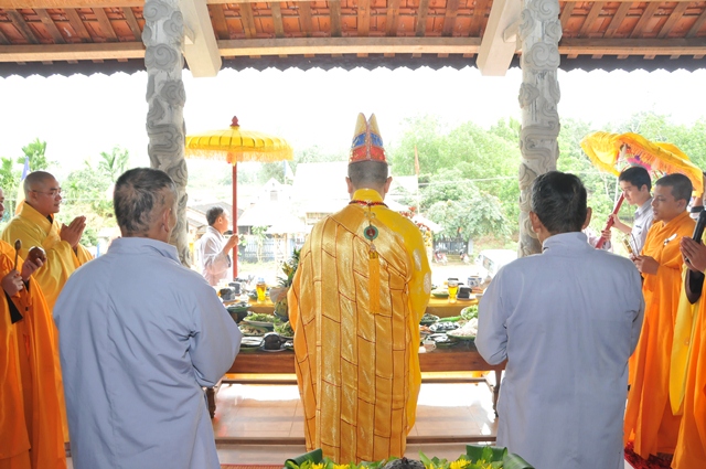 Tại buổi lễ Hòa thượng chứng minh đã cử hành nghi lễ thỉnh Tam Bảo và khai đại hồng chung cũng như cúng thí thực âm linh cô hồn cầu nguyện dự án công trình xây dựng các hạng mục tiếp theo sớm thành tựu viên mãn.