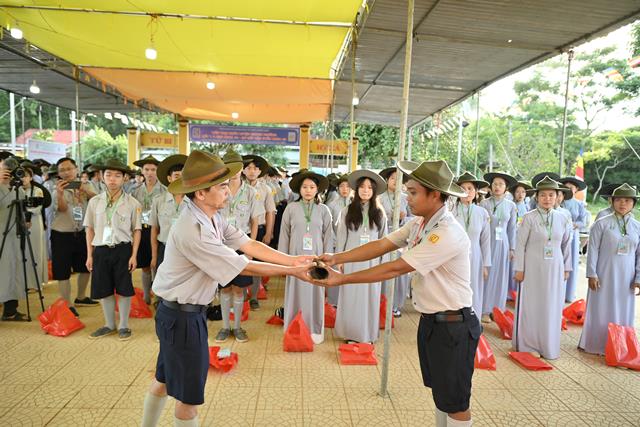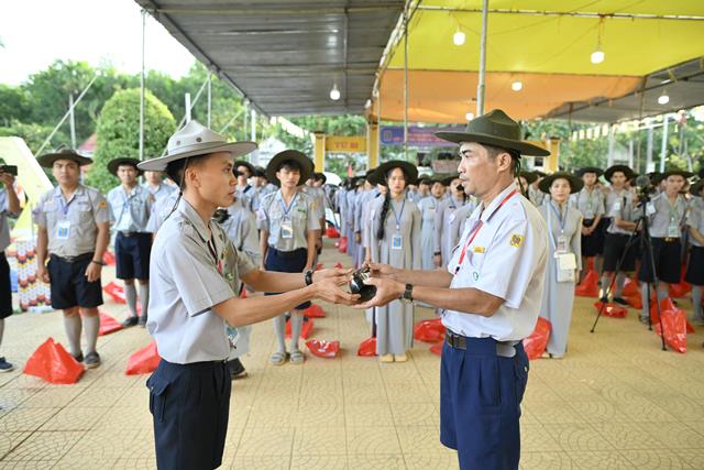 Trại trưởng nhận còi lệnh từ Tổ đời sống trại