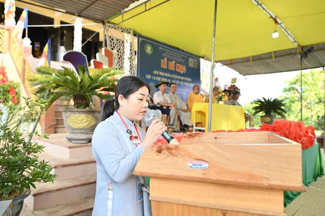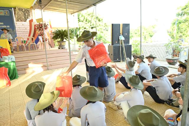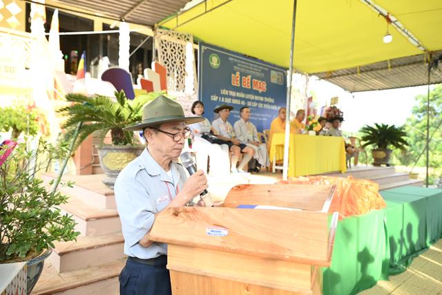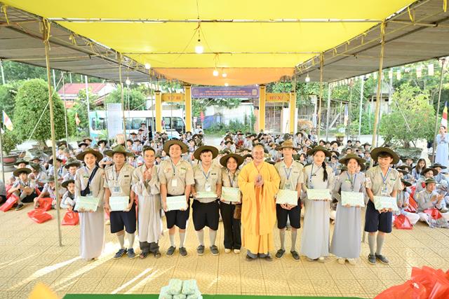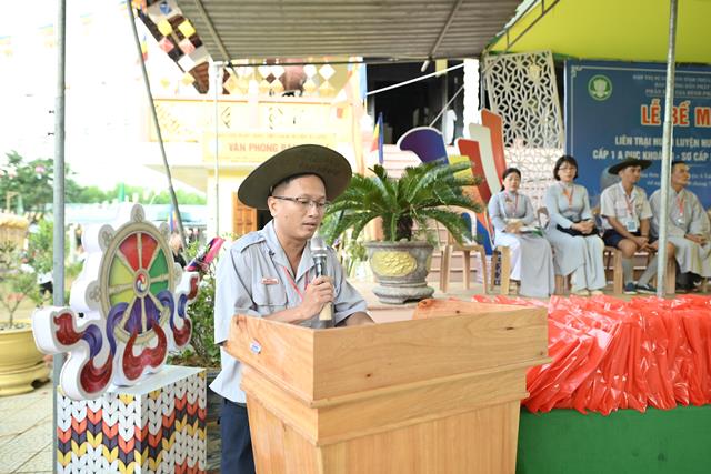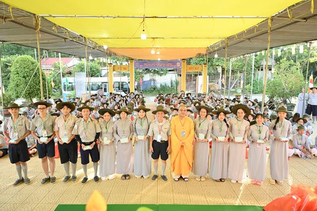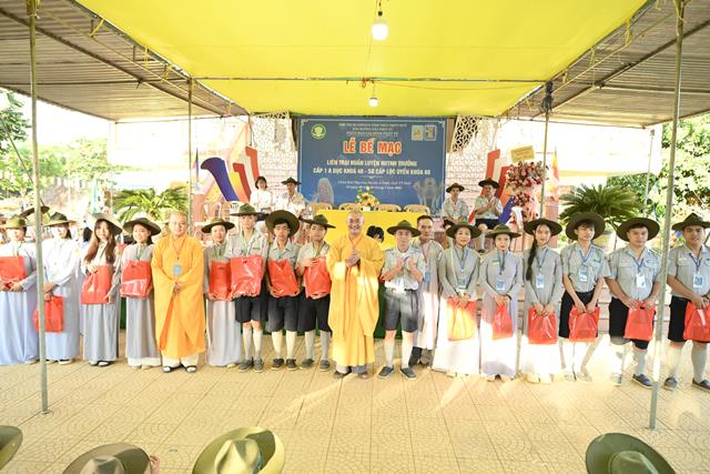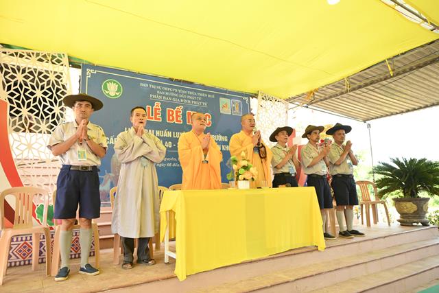 Đại đức Thích Tâm Phương ban đạo từ tại buổi lễ, qua đó Trưởng lão Hòa thượng đã có lời tán thán các Anh chị trong Ban Quản trại đã cố gắng hết sức mình để cho khóa Huấn luyện và có lời chúc mừng kỳ liên trại huấn luyện thành tựu viên mãn. Đại đức chứng minh cũng không quên khuyến tấn nhắc nhở các Anh chị Tân Huynh trưởng hãy cố gắng tu tập tự thân để dẫn dắt đàn em mình theo con tu học Phật Pháp, phụng đạo giúp đời.