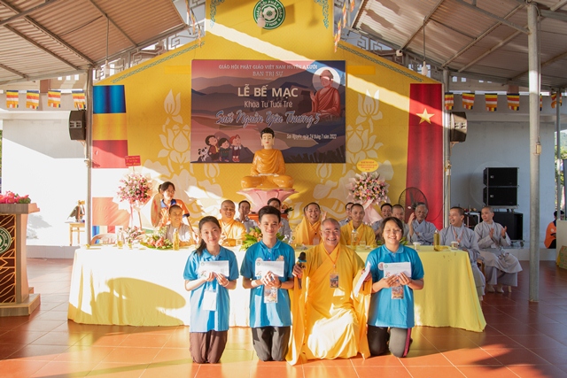 Trong giây phút trang nghiêm lắng đọng này, Chư Tôn đức đã chia sẻ, dặn đò đến các em khóa sinh với nhũng lời huấn từ đầy ý nghĩa. Còn các em tu sinh thì đầy xúc động sự dạy bảo, chỉ dẫn của các Thầy, Sư cô và sự hướng dẫn nhiệt tình của các bạn Tình nguyện viên trong suốt khoá tu.