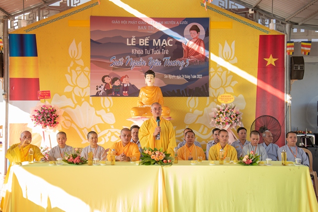 Tại lễ Bế mạc, Đại đức Thích Hạnh Minh - Phó Trưởng BTC khóa tu đọc diễn văn bế mạc đã nhấn mạnh: “Khóa tu dành cho tuổi trẻ “Suối nguồn yêu thương 5” được tổ chức tại huyện A Lưới lần này hướng đến mục đích giúp các bạn khóa sinh có thể vận dụng tư tưởng giáo dục và đạo đức của Phật giáo ứng dụng vào đời sống thường nhật để có một đời sống: có ích, hạnh phúc và an lạc; phát huy tinh thần trách nhiệm đối với tự thân, gia đình và xã hội, là dịp để các bạn trẻ vui chơi, giải trí. Nhằm góp phần vào sự nghiệp giáo dục thế hệ trẻ Việt Nam, giúp các em có duyên lành đến với Đạo Phật, có cơ hội tiếp xúc với Phật Pháp, trở thành người sống có đạo đức, có trí tuệ, giàu lòng từ bi và yêu thương".