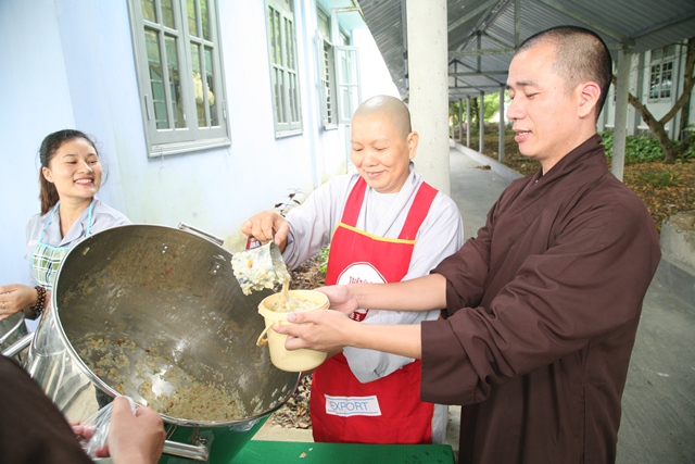 Chư Tôn đức và quý Phật tử múc cháo cho bệnh nhân