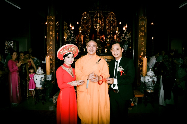 Trong ngày trọng đại của đôi uyên ương hôm nay, Thượng tọa Thích Thường Chiếu đã nhắc lại lời Phật dạy về trách nhiệm, bổn phận của người Phật tử tại gia trong cuộc sống hôn nhân, hạnh phúc gia đình.