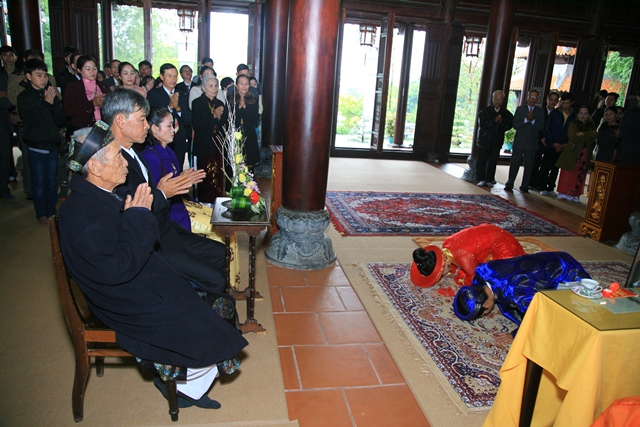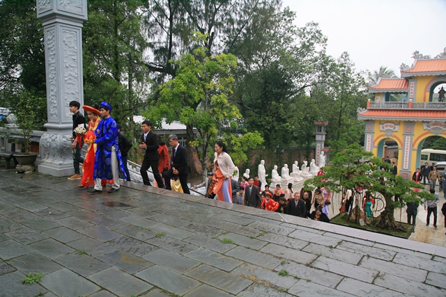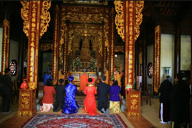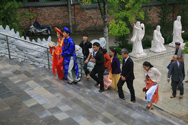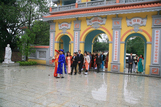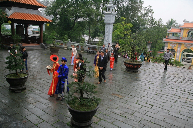 Đôi bạn trẻ cùng gia đình hai bên về tại Tổ đình Tường Vân