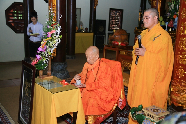 Trong ngày trọng đại của đôi uyên ương hôm nay, chư Tôn đức đã có những món quà cùng với lời chúc phúc trao đến cho đôi bạn trẻ. Và để nhắc nhở cho đôi tân lang, tân nương hiểu hơn về cuộc sống hạnh phúc lứa đôi theo tinh thần đức Phật dạy về hạnh phúc gia đình cho người Phật tử, sống làm sao cho đúng đạo lý làm người và giữ được bản sắc văn hóa của người Việt Nam, Hòa thượng chứng minh đã từ bi hoan hỷ ban đạo từ.