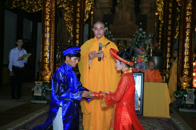 Hòa thượng chứng minh chú nguyện đôi nhẫn cưới