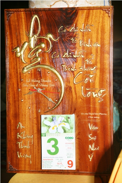 Phật tử Quảng Tâm đại diện các huynh đệ Gia đình Hương Sen tặng quà chúc mừng.