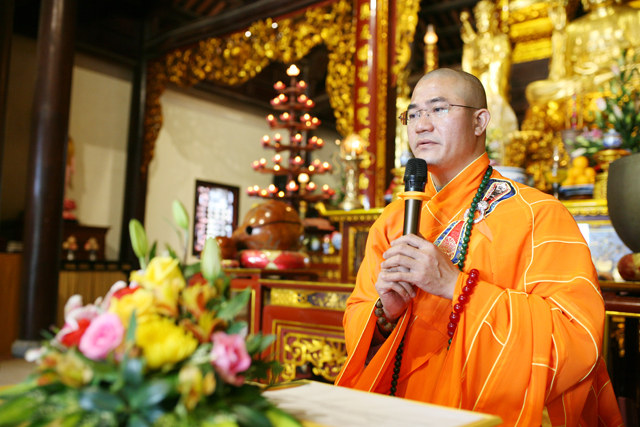 Đại đức Thích Tâm Phương niêm hương bạch Phật