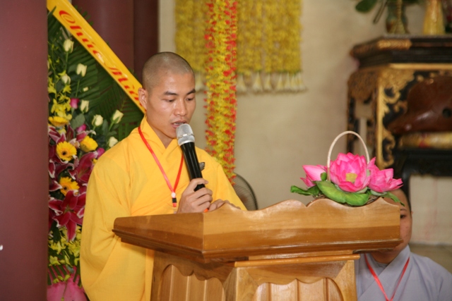 Đại đức Thích Hương Sơn, Chánh Thư ký BTS, Trưởng Ban Hoằng pháp GHPGVN huyện A Lưới, Trưởng Ban Tổ chức khóa tu tuổi trẻ "Suối nguồn yêu thương 2" đọc diễn văn khai mạc.