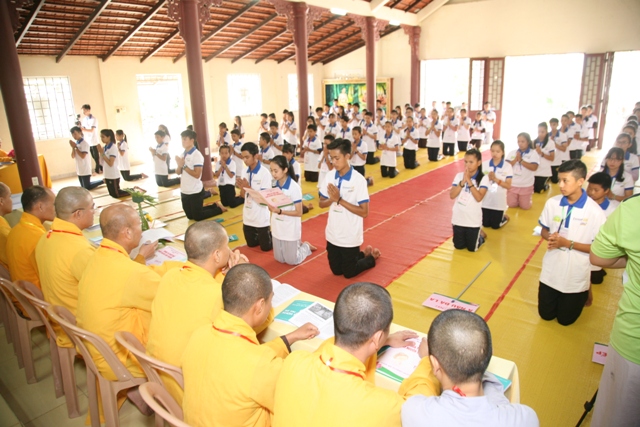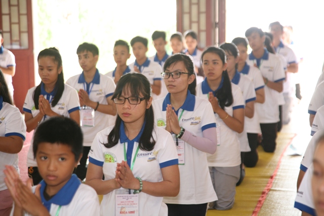 Chúng con phát nguyện chấp hành đúng nội quy của khóa tu, tinh tấn tu học, cùng thương yêu giúp đỡ lẫn nhau. Chúng con nguyện lắng nghe, tiếp nhận những lời hay ý đẹp, lời vàng ngọc của quý Tôn đức chỉ dạy, để rồi mai đây, sau khi mãn khóa, chúng con rời xa ngồi chùa Sơn Thủy trang nghiêm trên dãy Trường Sơn hùng vỹ này, tạm biệt các bạn đồng tu để trở về với cuộc sống hằng ngày của mình, chúng con có đầy đủ tình yêu thương và sự hiểu biết, đem nhân lành ấy đến với những ai có duyên, có chí mong muốn trở thành người tốt, có ích cho xã hội.