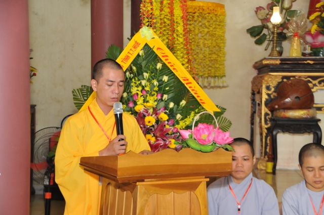 Khóa sinh Trần Thị Thanh Thủy đại diện các Khóa sinh đồng tu đọc lời phát nguyện