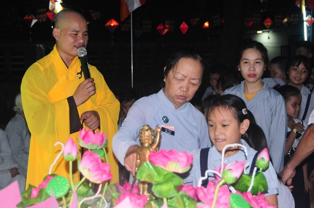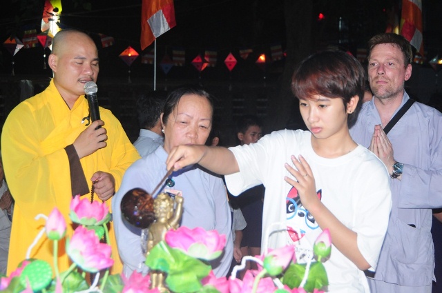Sau phần giảng giải ý nghĩa của Đại đức chứng minh là lễ tắm Phật, lần lượt quý thầy, quý bác đạo hữu và HTr đoàn sinh GĐPT An Lạc đứng trước kim thân Phật tổ sơ sinh tưới lên những giọt nước mát lên thân ngài và đồng tâm niệm kinh khánh đản và kệ tắm Phật, mỗi ngày hãy cố gắng gọt rữa tâm mình để trở thành con người thuần thiện và an lac.