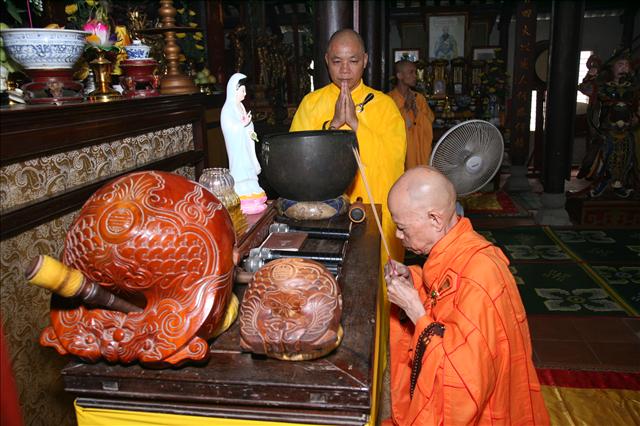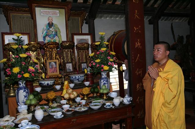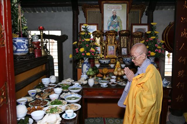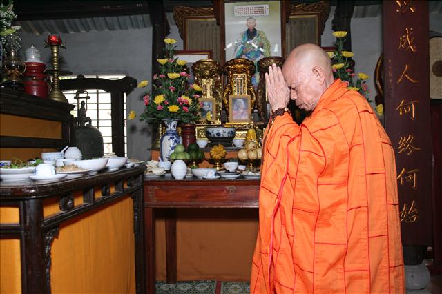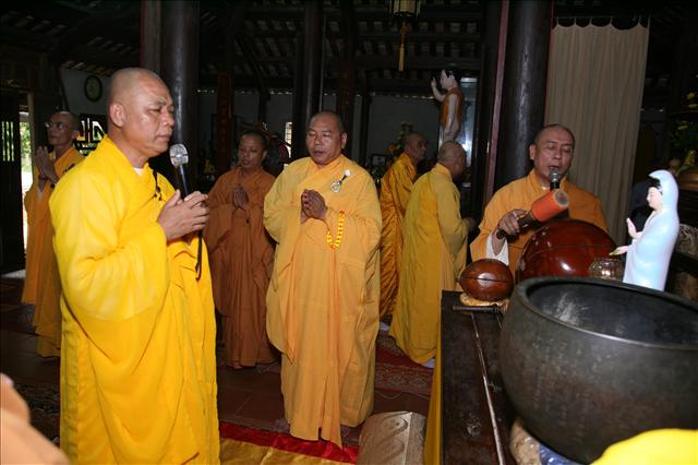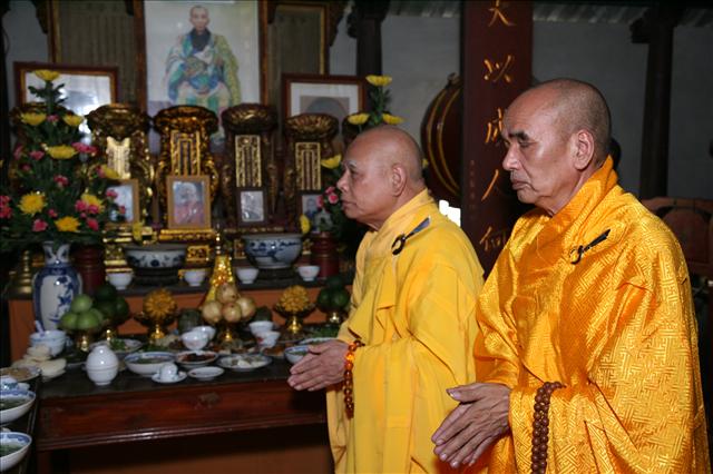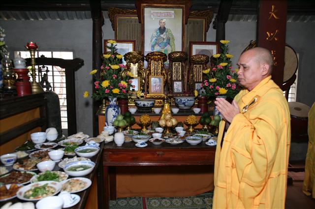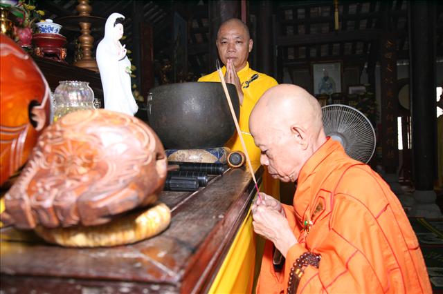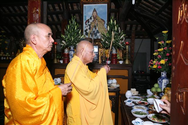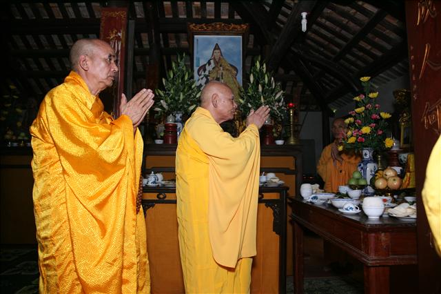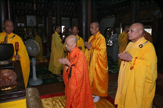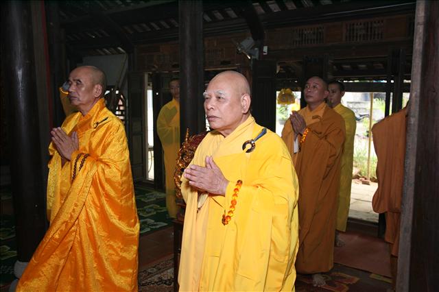 Đến dâng hương, đảnh lễ và cử hành Lễ húy nhật có chư Tôn Hòa thượng, chư Thượng tọa, Đại đức Tăng, Ni trong Môn phái Tổ đình Tường Vân.