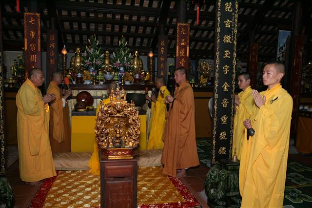 Chư Tôn đức đã thành kính trang nghiêm đảnh lễ giác linh Cố Hòa thượng, ôn lại cuộc đời và đạo nghiệp của Ngài đã đóng góp cho sự nghiệp giáo dục đào tạo Tăng tài từ đó đến nay.