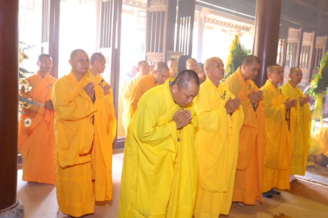 Tối cùng ngày, Chư Tôn đức trong Môn phái Tổ đình Tường Vân đã vân tập tại Chánh điện và trì tụng kinh Di Giáo.