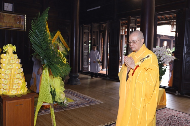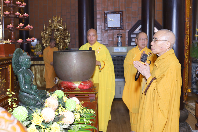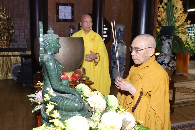 Hoà thượng Thích Quang Nhuận niêm hương bạch Phật cử hành nghi thức cúng ngọ
