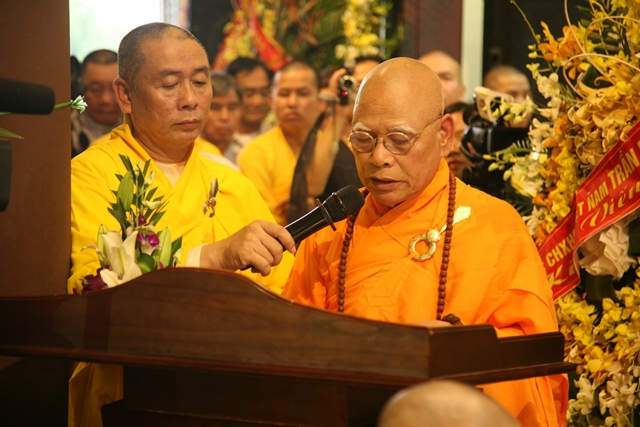 Trước khi cử hành lễ phụng tống kim quan Hòa thượng nhập Bảo tháp, nơi an nghỉ ngàn thu của trần thế, chúng tôi xin được thay mặt Hội đồng Chứng minh, Hội đồng Trị sự Giáo hội Phật giáo Việt Nam, Tăng Ni, Phật tử Việt Nam ở trong nước và ở nước ngoài có đôi lời tưởng niệm.