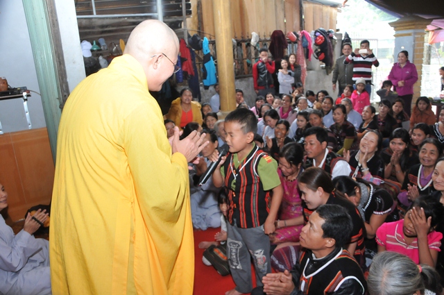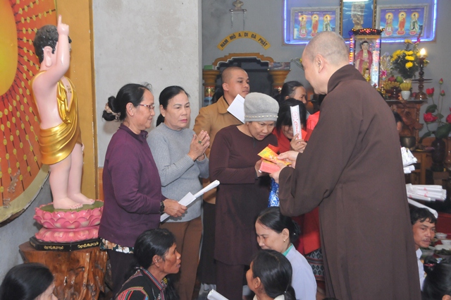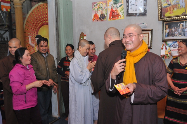 Đại đức Trưởng Ban Trị sự gửi lời cầu chúc sức khỏe đầu Xuân Đinh Dậu đến bà con đồng bào dân tộc thiểu số, cùng lời động viên khích lệ tinh thần tu học của bà con ngày càng tinh tấn hơn, thực hành lời dạy của Đức Phật trong cuộc sống hằng ngày, để đem lại niềm lợi lạc cho mình và cho xã hội, luôn xây dựng cuộc sống đoàn kết giữa người Kinh và đồng bào thiểu số, chăm lo sản xuất nhằm ổn định, phát triển kinh tế đem lại cuộc sống ấm no hạnh phúc cho gia đình và thôn bản.