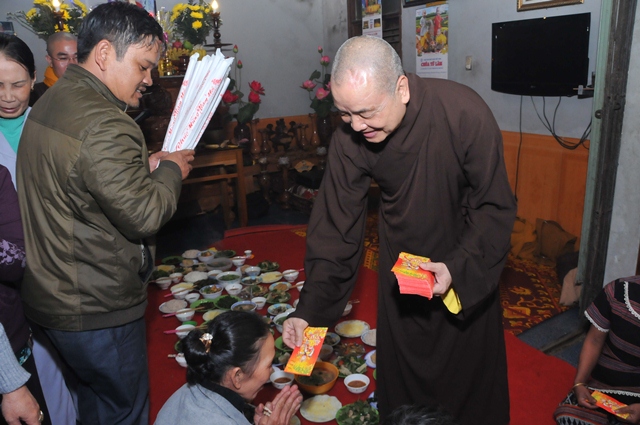 Cũng trong buổi lễ này, Hòa thượng Huệ Phước đã trao lộc đầu xuân đến quý Đạo hữu, ai nấy đều hoan hỷ khi được dự lễ và nhận lộc chúc xuân từ Hòa thượng và chư Tôn đức.