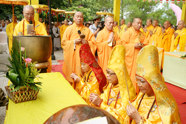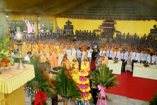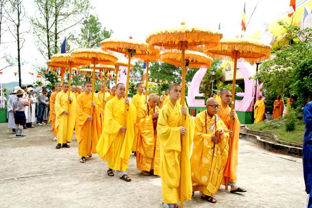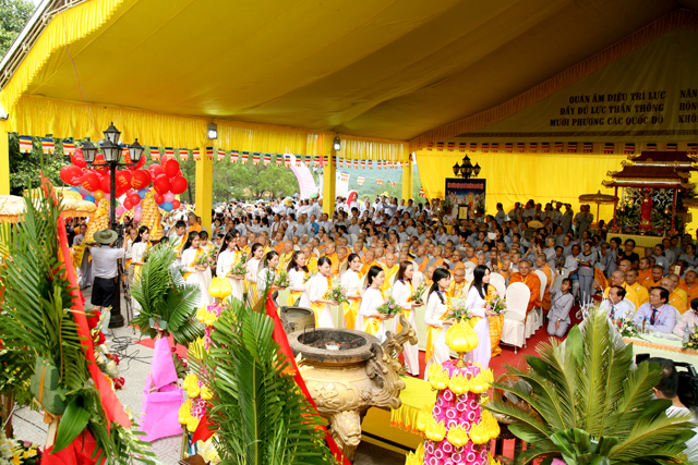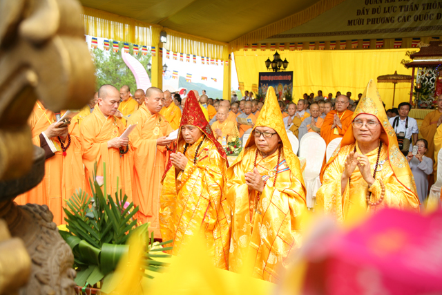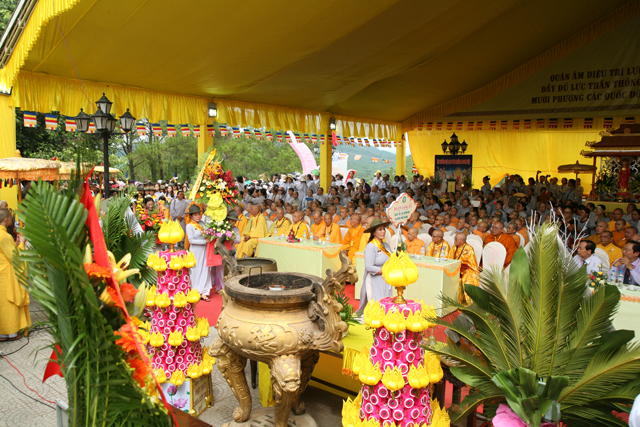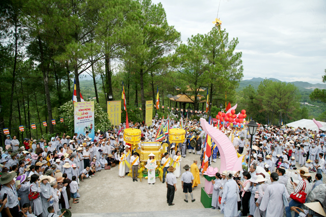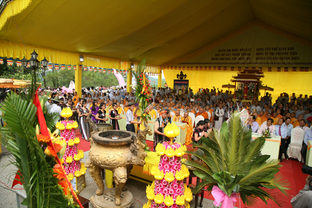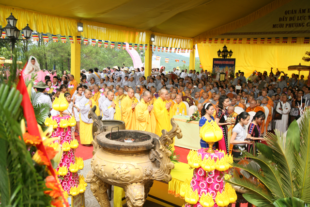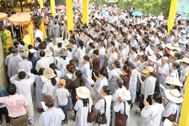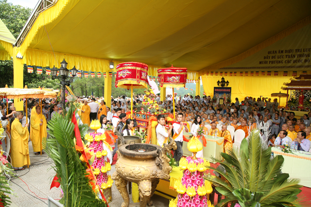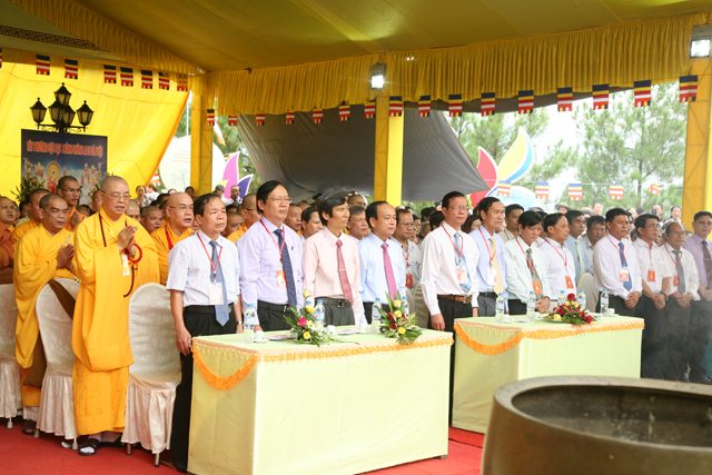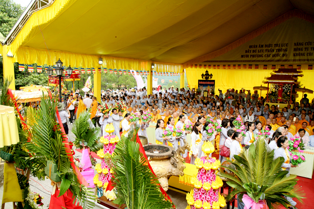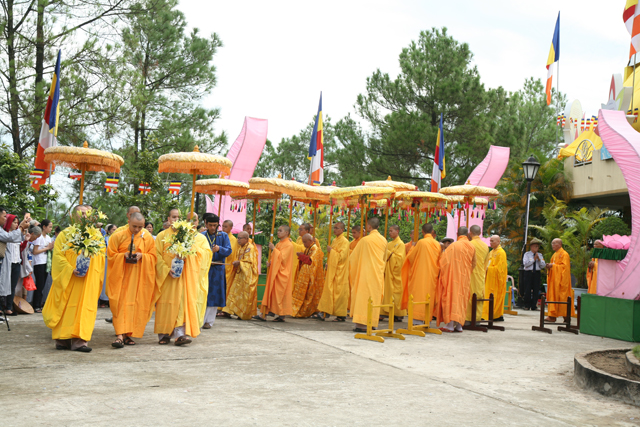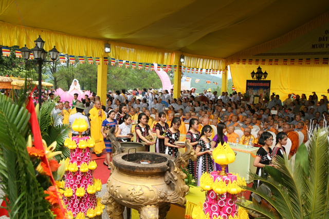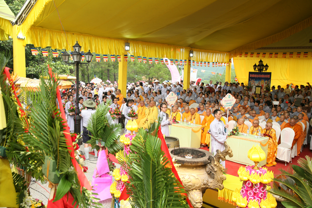 Trong không khí trang nghiêm thành kính, chư tôn Giáo phẩm Chứng minh, chư tôn Hòa thượng, chư Thượng tọa Đại đức Tăng Ni, quý quan khánh đã niệm hương và cử hành nghi lễ cầu nguyện. Tiếp đến là nghi thức thả bồ câu và bong bóng nguyện cầu Tổ quốc vinh quang, Đạo pháp trường tồn, thế giới hòa bình, chúng sinh an lạc.