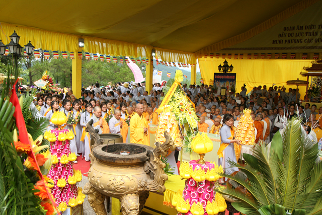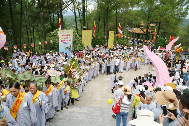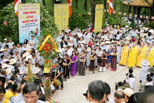 Lễ hội được tiếp tục với phần diễu hành dâng hương hoa và vật phẩm cúng dường Đức Bồ Tát Quán Thế Âm được sự tham gia đông đủ của các đơn vị Đoàn thể, Đạo tràng, Phật tử, cầu nguyện Đức Bồ Tát Quán Thế Âm gia hộ cho đất nước quê hương, cho đồng bào nhân loại, cho tất cả chúng sanh phúc thọ miên trường, cát tường như ý.