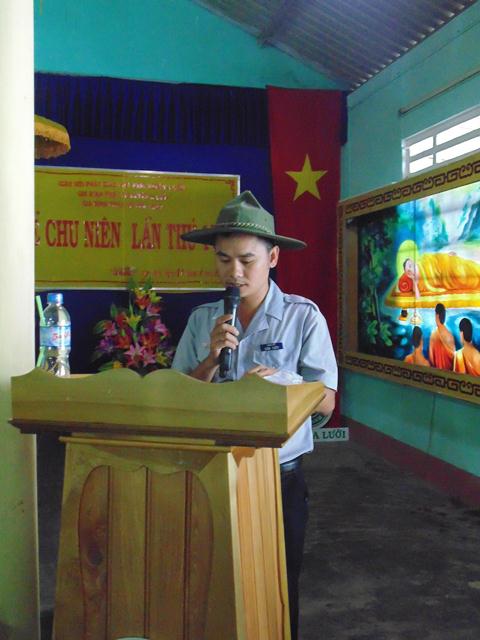 Huynh trưởng cấp Tập: Quảng Danh - Trương Trà, Trưởng Ban Kiểm soát GHPGVN huyện A Lưới, Liên Đoàn trưởng GĐPT Sơn Thủy phát biểu chào mừng.