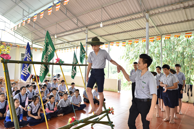 Huynh trưởng ngành Thiếu đón nhận đoàn sinh