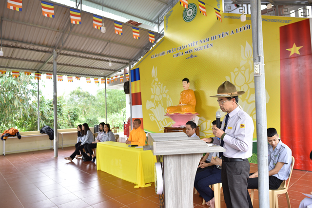 Buổi lễ dưới sự chứng minh của Đại đức Thích Thiền Ngộ, Phó Ban Hướng Dẫn Phật tử GHPGVN Huyện A Lưới, trú trì Niệm Phật đường Sơn Nguyên. Cùng toàn thể anh chị em Huynh trưởng và đoàn sinh tham dự đông đủ.