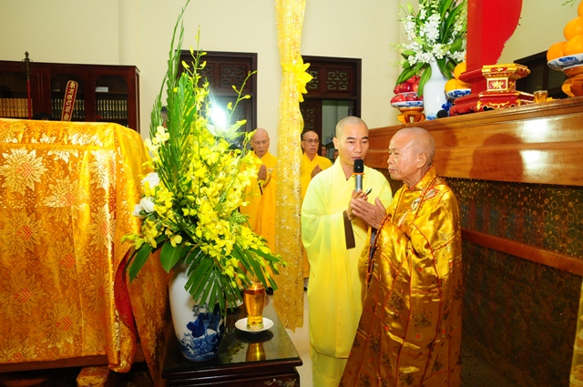 Tại buổi lễ, Hòa thượng Thích Huệ Ấn, Thành viên HĐCM, Giáo phẩm chứng minh BTS GHPGVN tỉnh Thừa Thiên Huế quang lâm nơi Thiền thất của Cố Trưởng lão Hòa thượng làm việc cho đến khi trút hơi thở cuối cùng trong tiếng niệm Phật và chuông trống Bát-nhã liên hồi.