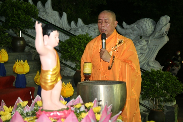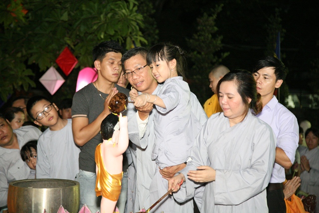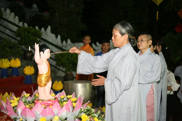 Hòa thượng Thích Chơn Tế niêm hương bạch Phật cử hành nghi thức tắm Phật