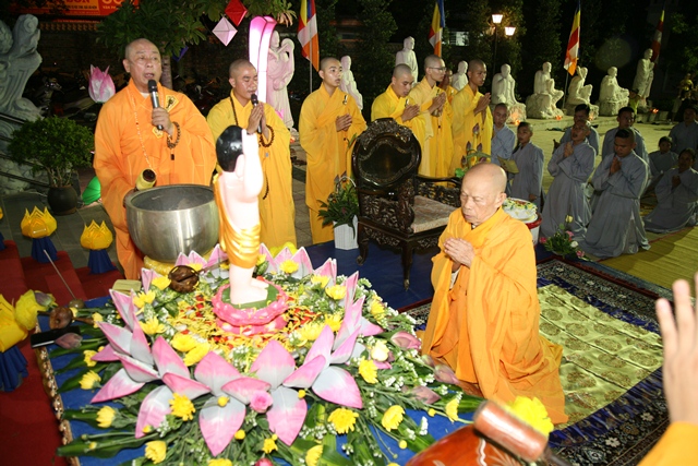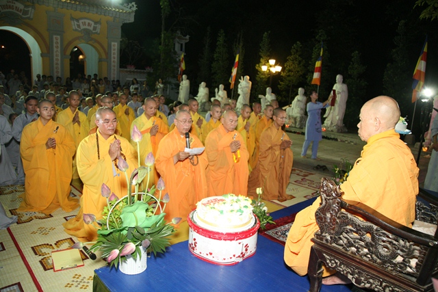 Để thể hiện tấm lòng thành kính của chúng con đối với bậc Thầy khả kính, nhân ngày sinh nhật lần thứ 81 của Thầy. Chúng con bày tỏ tất lòng thành kính, cầu nguyện Thầy tứ đại điều hoà, pháp thể khinh an, cửu trụ ta bà để là bóng cây che mát chúng con trên con đường tu học Phật đạo và để cảm đức từ bi nhiều kiếp nguyện cho thân cận. Thay lời đại chúng, chúng con thành tâm khánh chúc Hòa thượng: