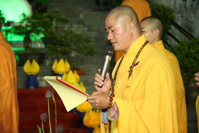 Đại đức Thích Tâm Phương điều hành chương trình buổi lễ