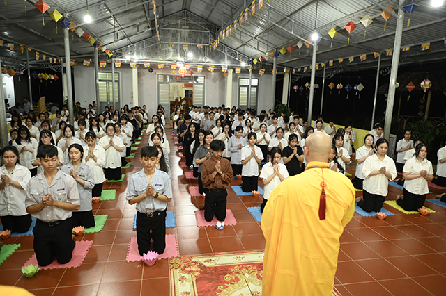 Buổi lễ diễn ra trong không gian thanh tịnh, dưới sự chủ trì của chư Tôn đức cùng sự hiện diện của quý phụ huynh, quý thầy cô giáo và đông đảo các em học sinh. Đây là hoạt động thường niên mang ý nghĩa sâu sắc, nhằm tiếp thêm động lực tinh thần, hướng các bạn trẻ đến sự an ổn, tự tin và vững vàng trong chặng đường phía trước.