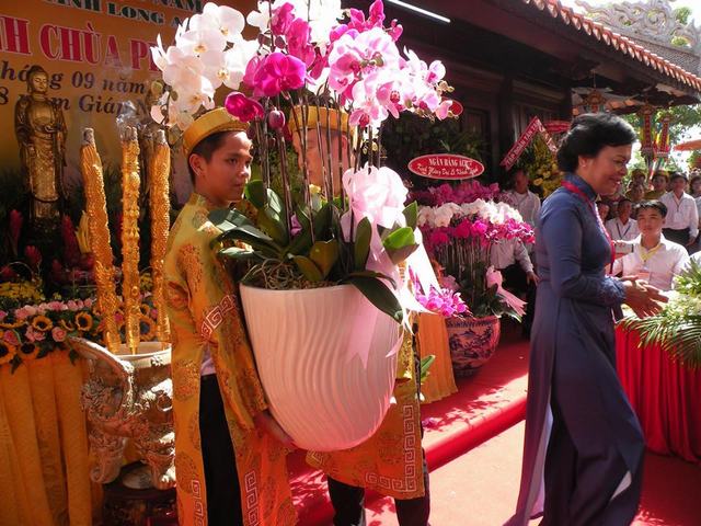 Rất nhiều lẳng hoa, kỷ vật từ trung ương đến các địa phương gửi đến chúc mừng, Trung ương Giáo hội cũng như BTS PG Tỉnh Long An tiếp nhận trước những tràng pháo tay hoan hỷ.