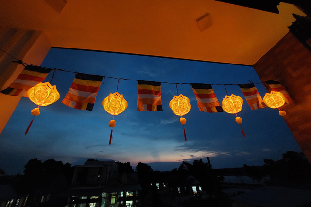 Cờ ngũ sắc và lồng đèn được thiết trí trang nghiêm kính mừng đức Phật đản sanh