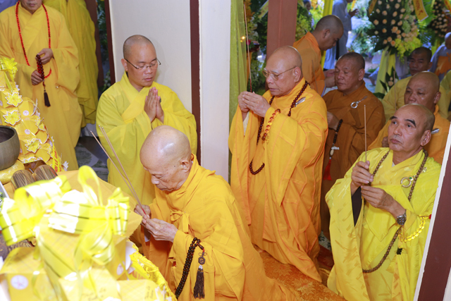 Đối trước Giác linh đài Cố Trưởng lão Hòa thượng Thích Lưu Thanh tân viên tịch, chư Tôn đức đã niêm hương bạch Phật cầu nguyện Giác linh Cố Hòa thượng cao đăng Phật quốc, hội nhập Ta bà hóa độ chúng sanh, lợi lạc hữu tình.