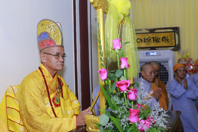 Trưởng lão Hòa thượng Thích Chơn Tế niệm hương cầu nguyện